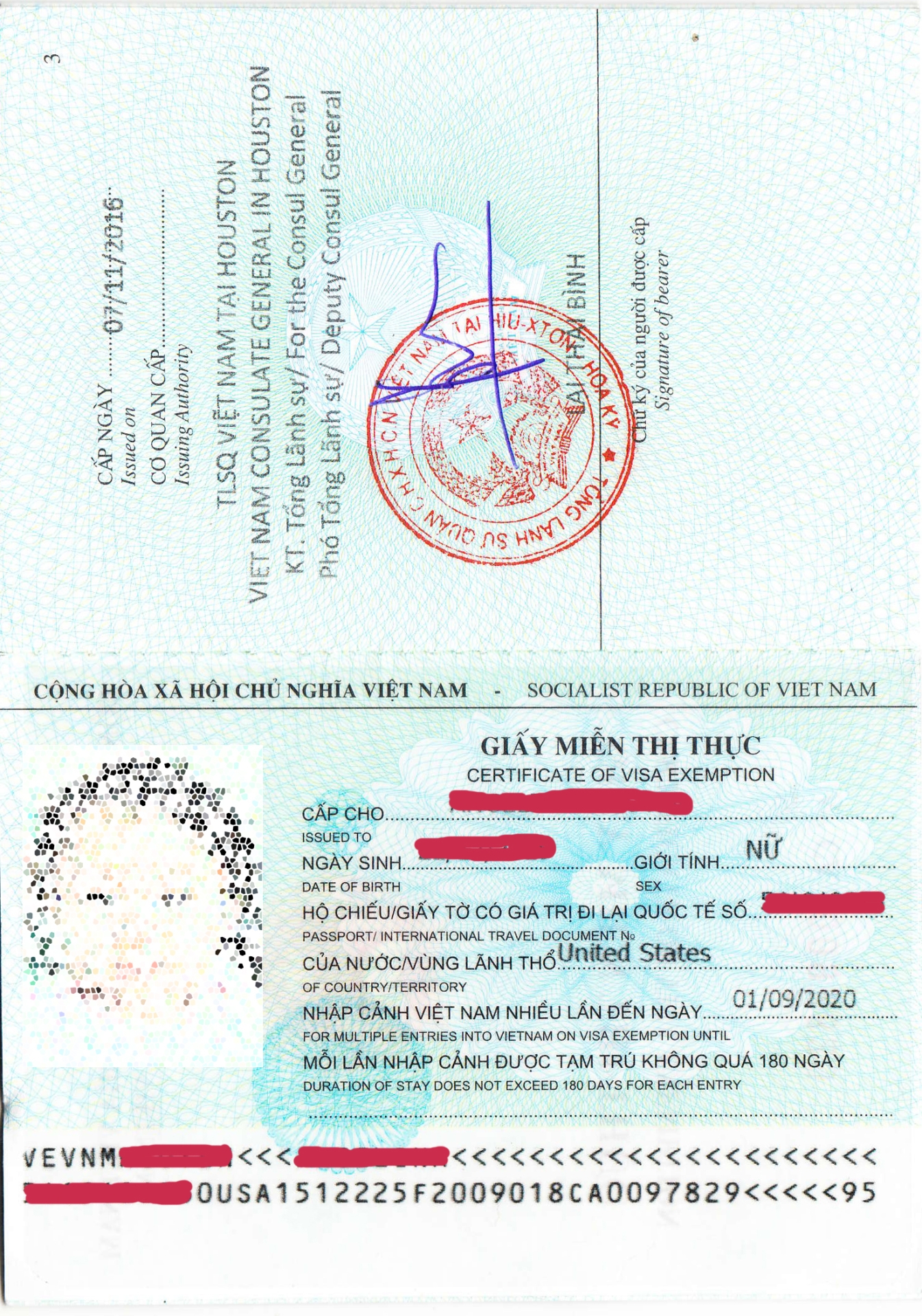* Giấy miễn thị thực được cấp cho người nhập cảnh Việt Nam thăm thân, giải quyết việc riêng.